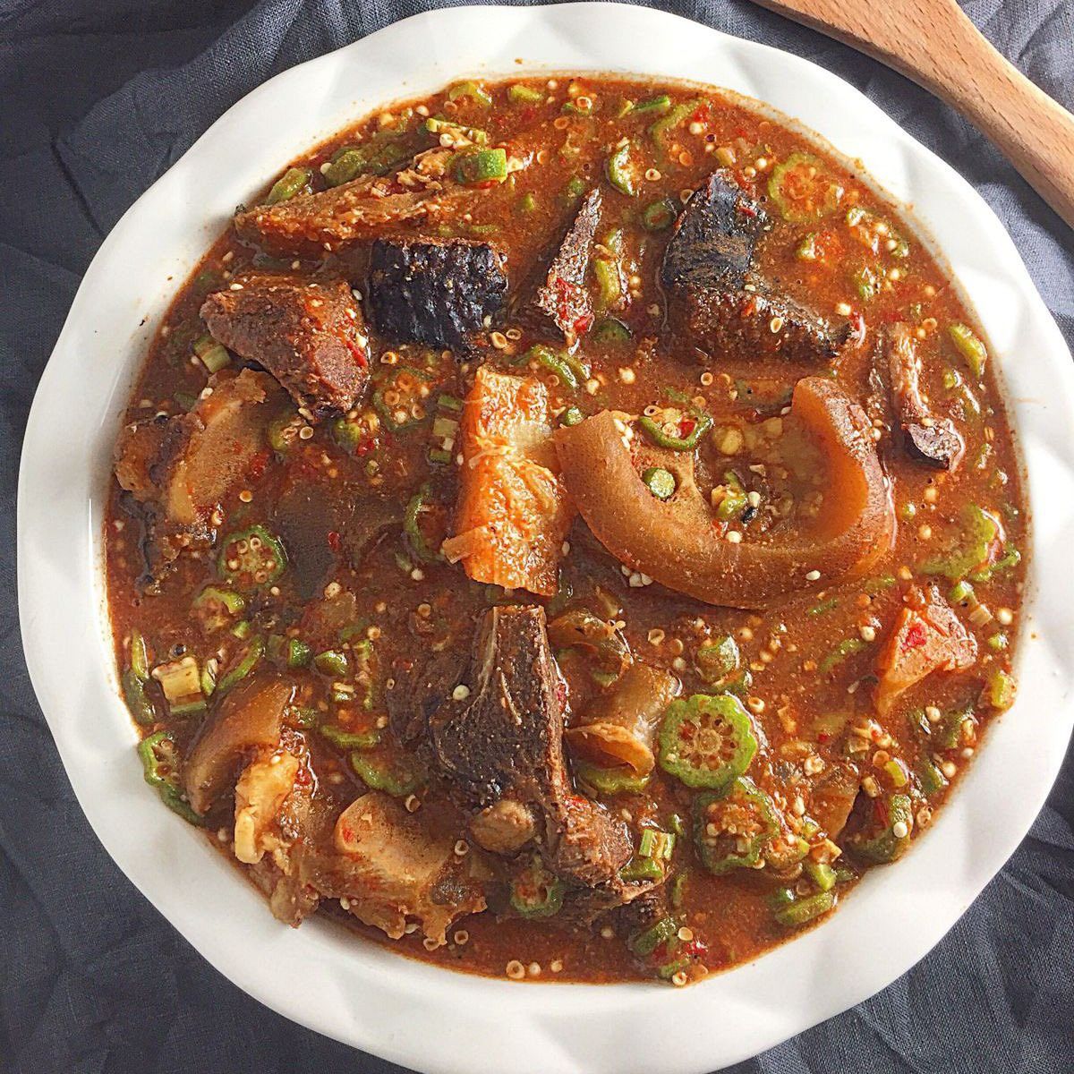 Our Vegan Okro Soup is a traditional Nigerian dish made with fresh okra, assorted vegetables, peppers, and spices. This plant-based version delivers a naturally thick and slippery texture, rich flavors, and a hearty, wholesome taste — perfect as a nutritious main course served with rice, fufu, or swallow.